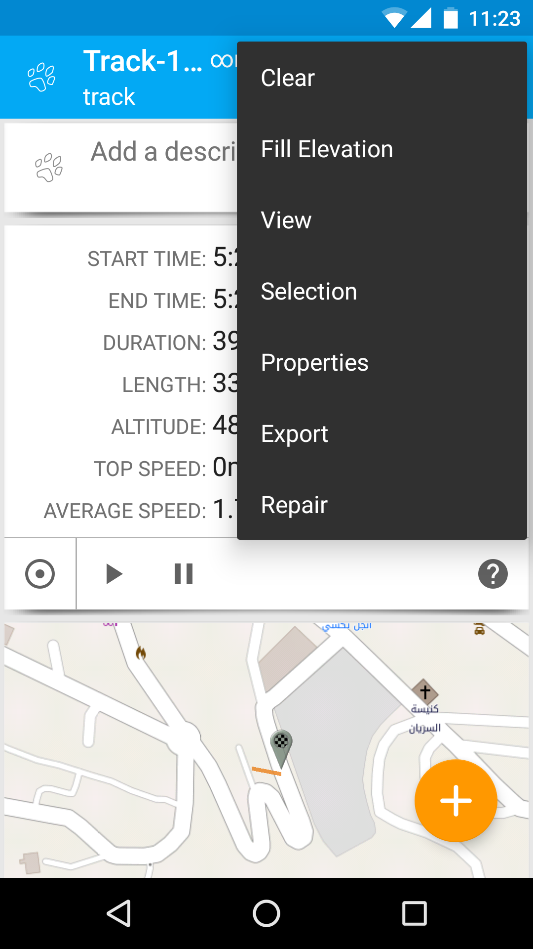 During the coverage test on the USJ Campus des sciences et technologies, we placed the base station in a third floor classroom in one of the highest building of the campus. As mentioned before, the connected computer logs periodically timestamps and information on the received signal power. We carried the mobile device around the campus walking slowly so that the LoRa transmission and the GPS update can take place. After the end of the walk, GPS data was exported form the GPS essentials application as in the following screenshot.